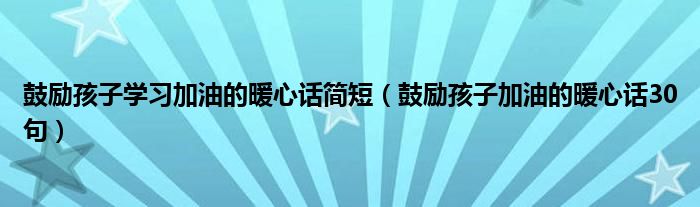 大家好,小高來為大家解答以上問題。鼓勵孩子學(xué)習(xí)加油的暖心話簡短,鼓勵孩子加油的暖心話30句很多人還不知道,現(xiàn)在讓我們一起來看看吧!