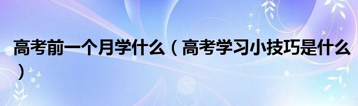 大家好,小高來(lái)為大家解答以上問題。高考前一個(gè)月學(xué)什么,高考學(xué)習(xí)小技巧是什么很多人還不知道,現(xiàn)在讓我們一起來(lái)看看吧!