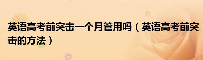 大家好,小高來為大家解答以上問題。英語高考前突擊一個月管用嗎,英語高考前突擊的方法很多人還不知道,現(xiàn)在讓我們一起來看看吧!