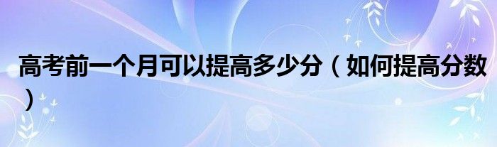大家好,小高來為大家解答以上問題。高考前一個(gè)月可以提高多少分,如何提高分?jǐn)?shù)很多人還不知道,現(xiàn)在讓我們一起來看看吧!