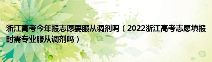 大家好,小高來為大家解答以上問題。浙江高考今年報志愿要服從調(diào)劑嗎,2022浙江高考志愿填報時需專業(yè)服從調(diào)劑嗎很多人還不知道,現(xiàn)在讓我們一起來看看吧!