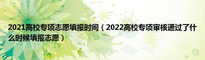 大家好,小高來為大家解答以上問題。2021高校專項(xiàng)志愿填報(bào)時(shí)間,2022高校專項(xiàng)審核通過了什么時(shí)候填報(bào)志愿很多人還不知道,現(xiàn)在讓我們一起來看看吧!