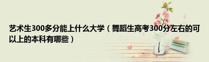 大家好,小高來(lái)為大家解答以上問題。藝術(shù)生300多分能上什么大學(xué),舞蹈生高考300分左右的可以上的本科有哪些很多人還不知道,現(xiàn)在讓我們一起來(lái)看看吧!