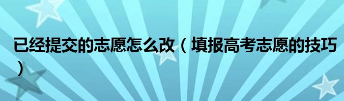 大家好,小高來(lái)為大家解答以上問(wèn)題。已經(jīng)提交的志愿怎么改,填報(bào)高考志愿的技巧很多人還不知道,現(xiàn)在讓我們一起來(lái)看看吧!