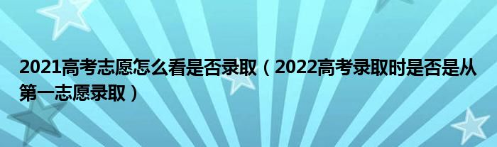大家好,小高來為大家解答以上問題。2021高考志愿怎么看是否錄取,2022高考錄取時是否是從第一志愿錄取很多人還不知道,現(xiàn)在讓我們一起來看看吧!