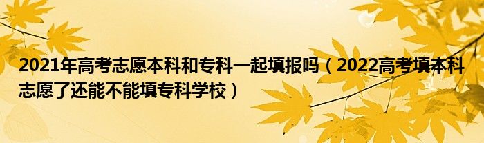 大家好,小高來為大家解答以上問題。2021年高考志愿本科和??埔黄鹛顖?bào)嗎,2022高考填本科志愿了還能不能填??茖W(xué)校很多人還不知道,現(xiàn)在讓我們一起來看看吧!