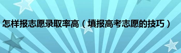 大家好,小高來為大家解答以上問題。怎樣報志愿錄取率高,填報高考志愿的技巧很多人還不知道,現(xiàn)在讓我們一起來看看吧!
