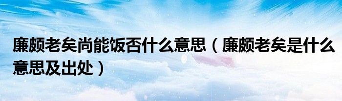 大家好,小源來為大家解答以上問題。廉頗老矣尚能飯否什么意思,廉頗老矣是什么意思及出處很多人還不知道,現(xiàn)在讓我們一起來看看吧!