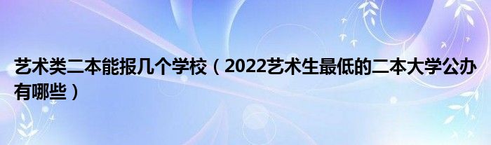 大家好,小高來為大家解答以上問題。藝術(shù)類二本能報(bào)幾個(gè)學(xué)校,2022藝術(shù)生最低的二本大學(xué)公辦有哪些很多人還不知道,現(xiàn)在讓我們一起來看看吧!