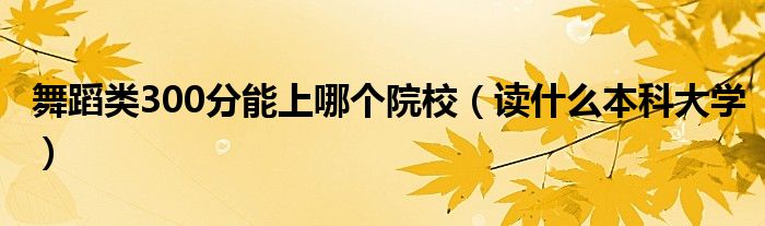大家好,小高來為大家解答以上問題。舞蹈類300分能上哪個院校,讀什么本科大學很多人還不知道,現在讓我們一起來看看吧!