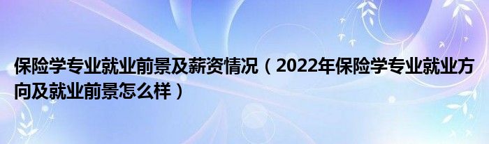 大家好,小源來(lái)為大家解答以上問(wèn)題。保險(xiǎn)學(xué)專(zhuān)業(yè)就業(yè)前景及薪資情況,2022年保險(xiǎn)學(xué)專(zhuān)業(yè)就業(yè)方向及就業(yè)前景怎么樣很多人還不知道,現(xiàn)在讓我們一起來(lái)看看吧!