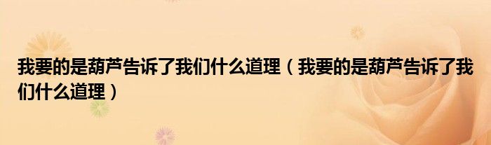 大家好,小源來為大家解答以上問題。我要的是葫蘆告訴了我們什么道理,我要的是葫蘆告訴了我們什么道理很多人還不知道,現(xiàn)在讓我們一起來看看吧!