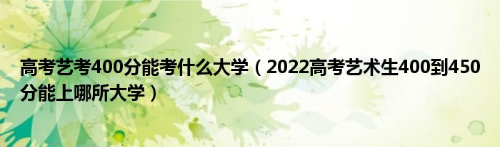 大家好,小高來為大家解答以上問題。高考藝考400分能考什么大學(xué),2022高考藝術(shù)生400到450分能上哪所大學(xué)很多人還不知道,現(xiàn)在讓我們一起來看看吧!