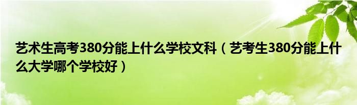 大家好,小高來為大家解答以上問題。藝術生高考380分能上什么學校文科,藝考生380分能上什么大學哪個學校好很多人還不知道,現(xiàn)在讓我們一起來看看吧!