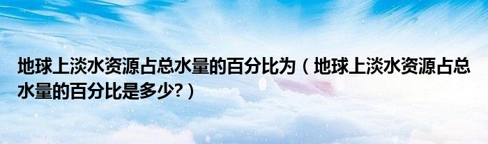 大家好,小高來為大家解答以上問題。地球上淡水資源占總水量的百分比為,地球上淡水資源占總水量的百分比是多少?很多人還不知道,現(xiàn)在讓我們一起來看看吧!