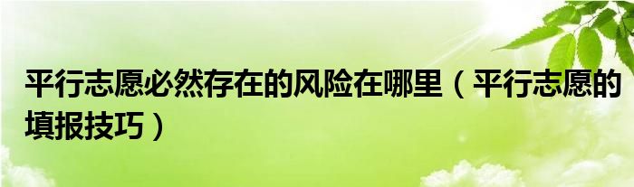 大家好,小高來為大家解答以上問題。平行志愿必然存在的風險在哪里,平行志愿的填報技巧很多人還不知道,現(xiàn)在讓我們一起來看看吧!