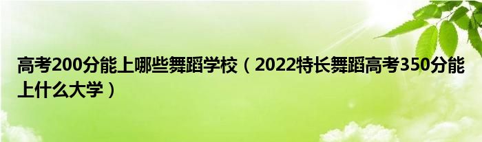 大家好,小高來為大家解答以上問題。高考200分能上哪些舞蹈學(xué)校,2022特長舞蹈高考350分能上什么大學(xué)很多人還不知道,現(xiàn)在讓我們一起來看看吧!