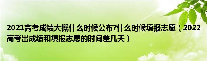 大家好,小高來為大家解答以上問題。2021高考成績大概什么時候公布?什么時候填報志愿,2022高考出成績和填報志愿的時間差幾天很多人還不知道,現(xiàn)在讓我們一起來看看吧!