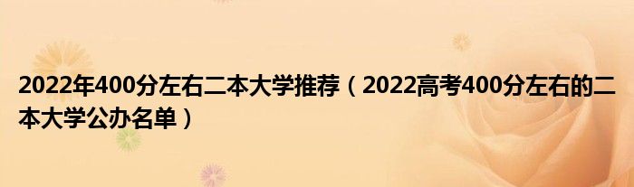 大家好,小源來為大家解答以上問題。2022年400分左右二本大學推薦,2022高考400分左右的二本大學公辦名單很多人還不知道,現(xiàn)在讓我們一起來看看吧!