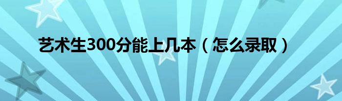 大家好,小高來為大家解答以上問題。藝術(shù)生300分能上幾本,怎么錄取很多人還不知道,現(xiàn)在讓我們一起來看看吧!