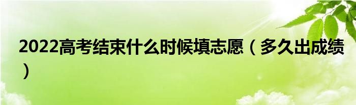 大家好,小高來(lái)為大家解答以上問(wèn)題。2022高考結(jié)束什么時(shí)候填志愿,多久出成績(jī)很多人還不知道,現(xiàn)在讓我們一起來(lái)看看吧!