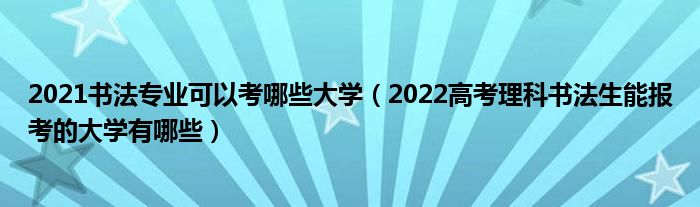 大家好,小高來為大家解答以上問題。2021書法專業(yè)可以考哪些大學(xué),2022高考理科書法生能報考的大學(xué)有哪些很多人還不知道,現(xiàn)在讓我們一起來看看吧!