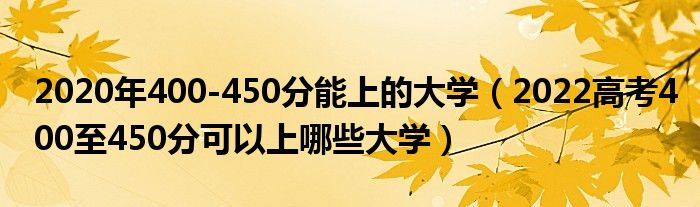 大家好,小高來為大家解答以上問題。2020年400-450分能上的大學(xué),2022高考400至450分可以上哪些大學(xué)很多人還不知道,現(xiàn)在讓我們一起來看看吧!