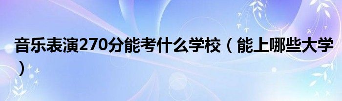 大家好,小高來為大家解答以上問題。音樂表演270分能考什么學(xué)校,能上哪些大學(xué)很多人還不知道,現(xiàn)在讓我們一起來看看吧!