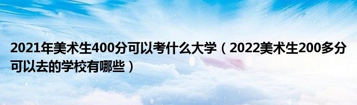 大家好,小高來為大家解答以上問題。2021年美術(shù)生400分可以考什么大學(xué),2022美術(shù)生200多分可以去的學(xué)校有哪些很多人還不知道,現(xiàn)在讓我們一起來看看吧!