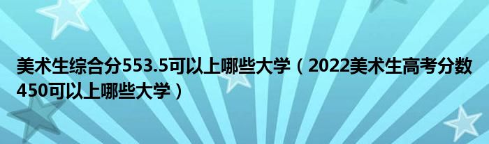 大家好,小高來(lái)為大家解答以上問(wèn)題。美術(shù)生綜合分553.5可以上哪些大學(xué),2022美術(shù)生高考分?jǐn)?shù)450可以上哪些大學(xué)很多人還不知道,現(xiàn)在讓我們一起來(lái)看看吧!