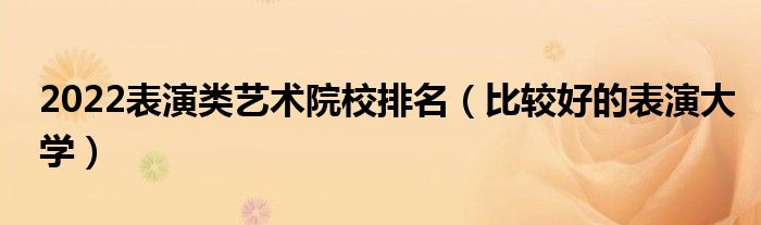 大家好,小高來為大家解答以上問題。2022表演類藝術(shù)院校排名,比較好的表演大學很多人還不知道,現(xiàn)在讓我們一起來看看吧!