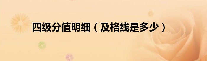 大家好,小高來為大家解答以上問題。四級分值明細(xì),及格線是多少很多人還不知道,現(xiàn)在讓我們一起來看看吧!