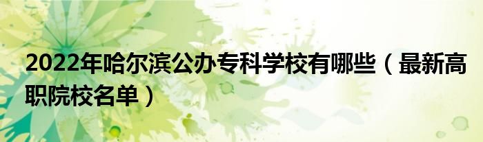 一、2022年哈爾濱公辦??茖W(xué)校名單