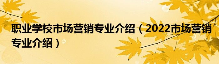 大家好,小高來為大家解答以上問題。職業(yè)學(xué)校市場營銷專業(yè)介紹,2022市場營銷專業(yè)介紹很多人還不知道,現(xiàn)在讓我們一起來看看吧!