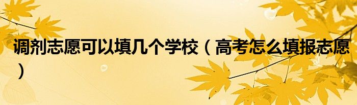 大家好,小高來為大家解答以上問題。調(diào)劑志愿可以填幾個(gè)學(xué)校,高考怎么填報(bào)志愿很多人還不知道,現(xiàn)在讓我們一起來看看吧!