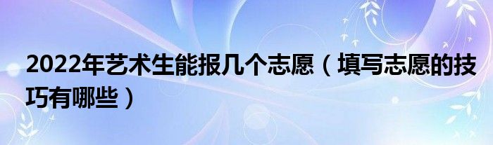大家好,小高來(lái)為大家解答以上問(wèn)題。2022年藝術(shù)生能報(bào)幾個(gè)志愿,填寫志愿的技巧有哪些很多人還不知道,現(xiàn)在讓我們一起來(lái)看看吧!
