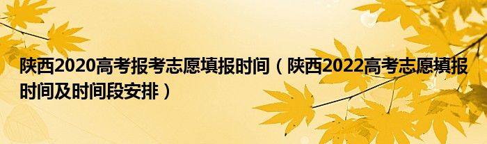 大家好,小高來為大家解答以上問題。陜西2020高考報(bào)考志愿填報(bào)時(shí)間,陜西2022高考志愿填報(bào)時(shí)間及時(shí)間段安排很多人還不知道,現(xiàn)在讓我們一起來看看吧!