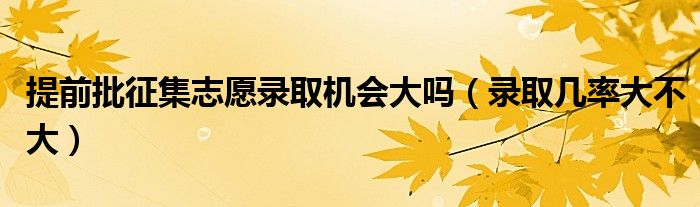 大家好,小高來為大家解答以上問題。提前批征集志愿錄取機會大嗎,錄取幾率大不大很多人還不知道,現(xiàn)在讓我們一起來看看吧!