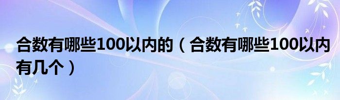 大家好,小高來為大家解答以上問題。合數(shù)有哪些100以內(nèi)的,合數(shù)有哪些100以內(nèi)有幾個很多人還不知道,現(xiàn)在讓我們一起來看看吧!