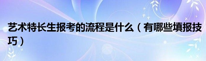 大家好,小高來為大家解答以上問題。藝術(shù)特長生報(bào)考的流程是什么,有哪些填報(bào)技巧很多人還不知道,現(xiàn)在讓我們一起來看看吧!