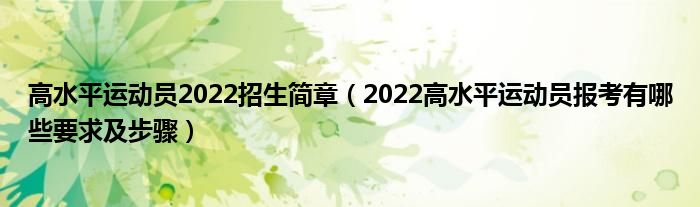 大家好,小高來為大家解答以上問題。高水平運動員2022招生簡章,2022高水平運動員報考有哪些要求及步驟很多人還不知道,現(xiàn)在讓我們一起來看看吧!