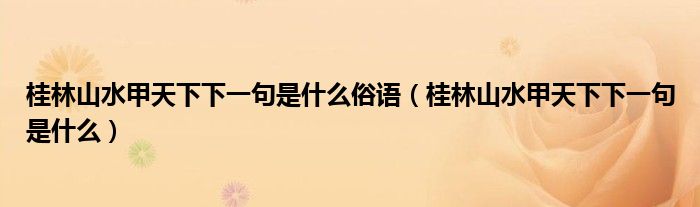 大家好,小高來(lái)為大家解答以上問(wèn)題。桂林山水甲天下下一句是什么俗語(yǔ),桂林山水甲天下下一句是什么很多人還不知道,現(xiàn)在讓我們一起來(lái)看看吧!