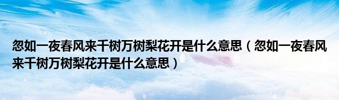 大家好,小高來為大家解答以上問題。忽如一夜春風(fēng)來千樹萬樹梨花開是什么意思,忽如一夜春風(fēng)來千樹萬樹梨花開是什么意思很多人還不知道,現(xiàn)在讓我們一起來看看吧!