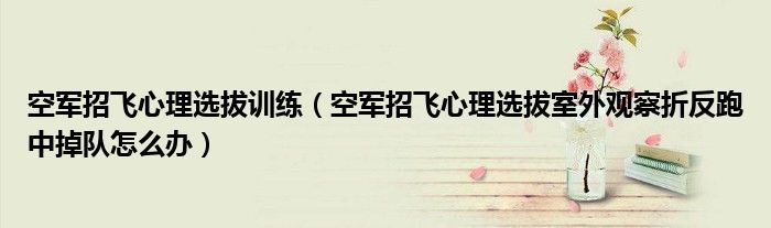 大家好,小高來為大家解答以上問題??哲娬酗w心理選拔訓練,空軍招飛心理選拔室外觀察折反跑中掉隊怎么辦很多人還不知道,現(xiàn)在讓我們一起來看看吧!