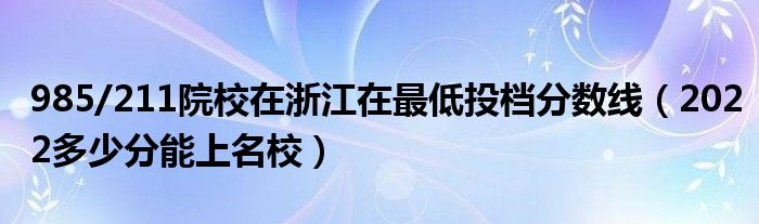 大家好,小高來為大家解答以上問題。985/211院校在浙江在最低投檔分?jǐn)?shù)線,2022多少分能上名校很多人還不知道,現(xiàn)在讓我們一起來看看吧!