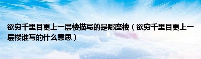 大家好,小高來為大家解答以上問題。欲窮千里目更上一層樓描寫的是哪座樓,欲窮千里目更上一層樓誰寫的什么意思很多人還不知道,現(xiàn)在讓我們一起來看看吧!