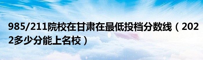 大家好,小高來為大家解答以上問題。985/211院校在甘肅在最低投檔分?jǐn)?shù)線,2022多少分能上名校很多人還不知道,現(xiàn)在讓我們一起來看看吧!