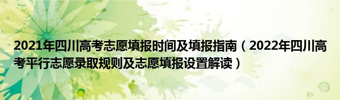 大家好,小高來為大家解答以上問題。2021年四川高考志愿填報(bào)時(shí)間及填報(bào)指南,2022年四川高考平行志愿錄取規(guī)則及志愿填報(bào)設(shè)置解讀很多人還不知道,現(xiàn)在讓我們一起來看看吧!