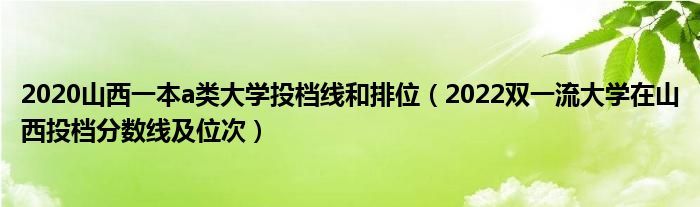 大家好,小高來(lái)為大家解答以上問(wèn)題。2020山西一本a類大學(xué)投檔線和排位,2022雙一流大學(xué)在山西投檔分?jǐn)?shù)線及位次很多人還不知道,現(xiàn)在讓我們一起來(lái)看看吧!