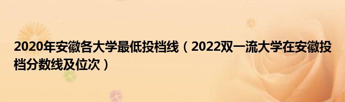 大家好,小高來為大家解答以上問題。2020年安徽各大學(xué)最低投檔線,2022雙一流大學(xué)在安徽投檔分?jǐn)?shù)線及位次很多人還不知道,現(xiàn)在讓我們一起來看看吧!
